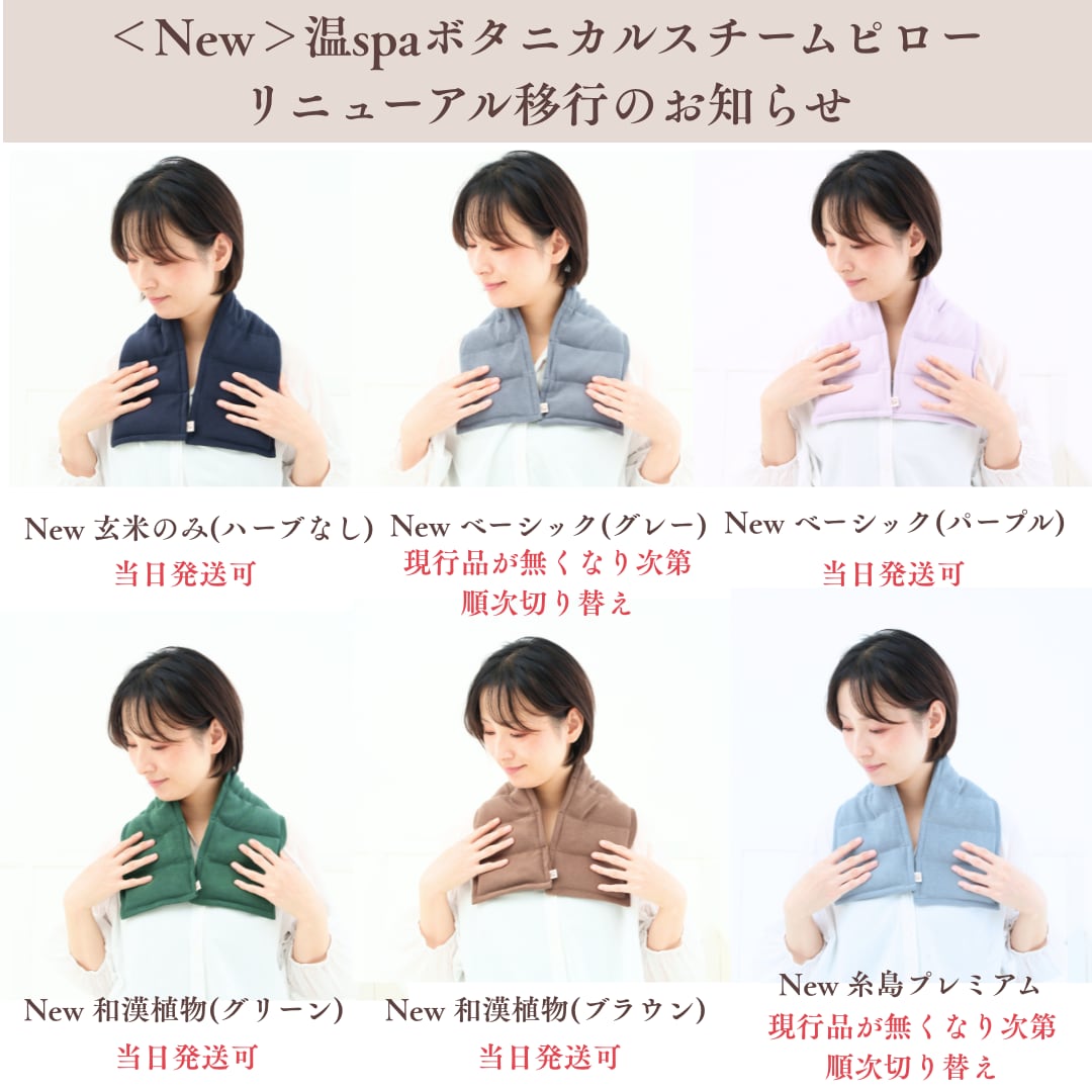 <カラバリも増えてリニューアル>ロングセラーのからだ温め用のボタニカルスチームピローが香り&カラー共に選べるようになりました。