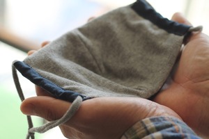 専用ピローカバーの端切れ(綿麻生地)を使用し、