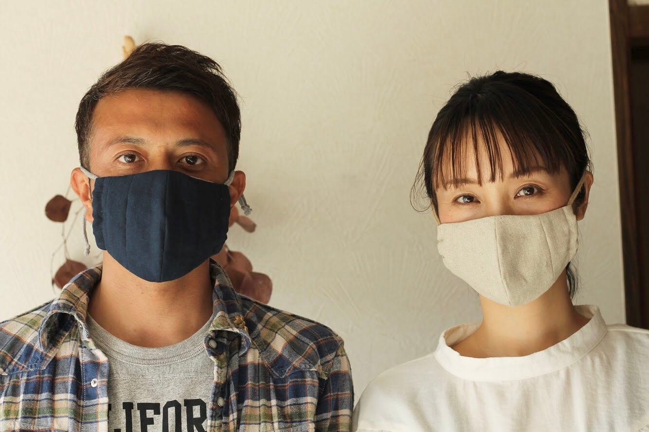 また、紐の長さが自由に調整できる結び方にしておりますので、お顔の大きさに合わせて都度調整頂けます。