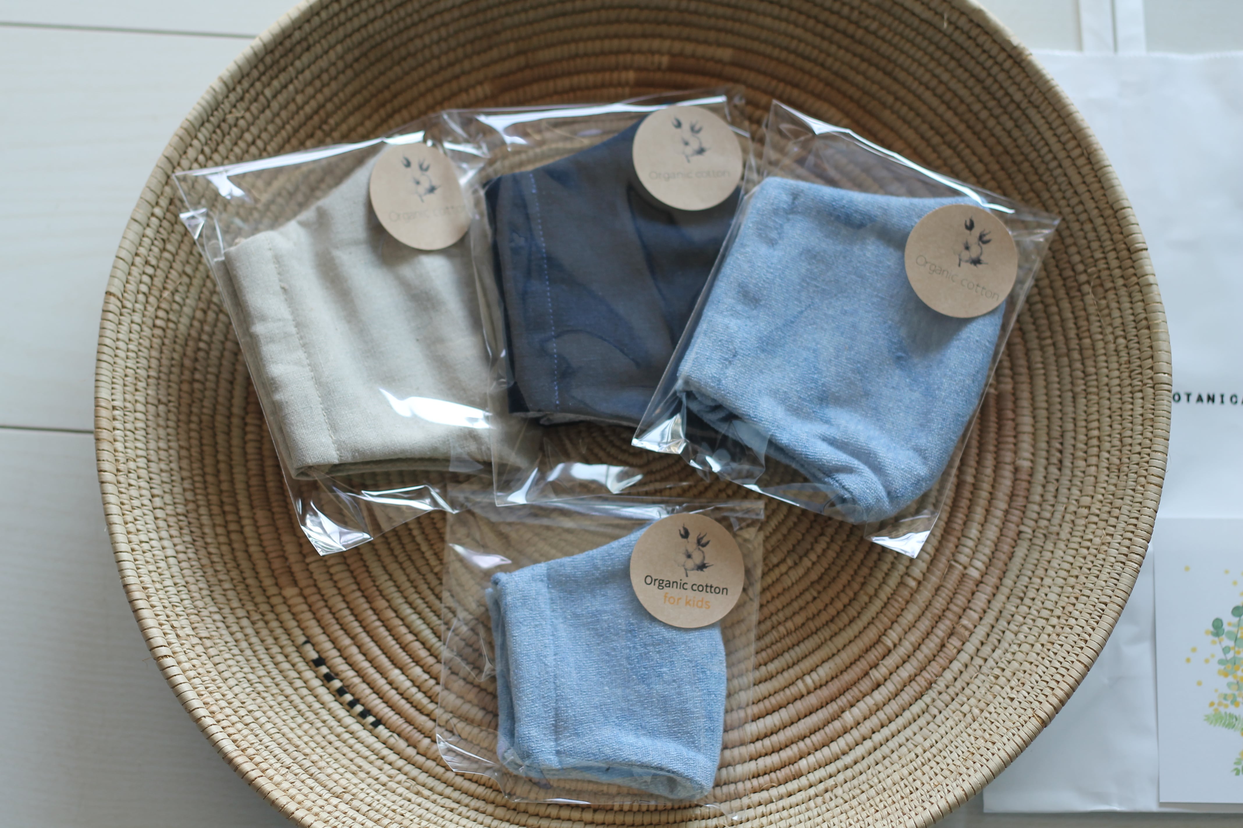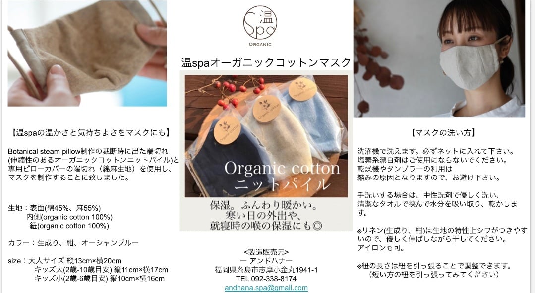 耳紐も同じオーガニックコットンの生地から作っておりますので、ゴムのように痛くありません。